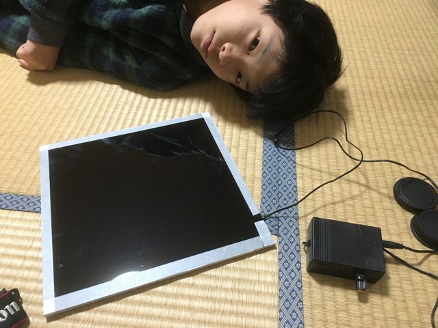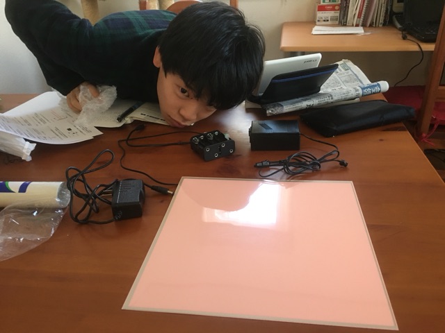 ひとまず休憩して自作フラット用ELパネルを記念撮影。