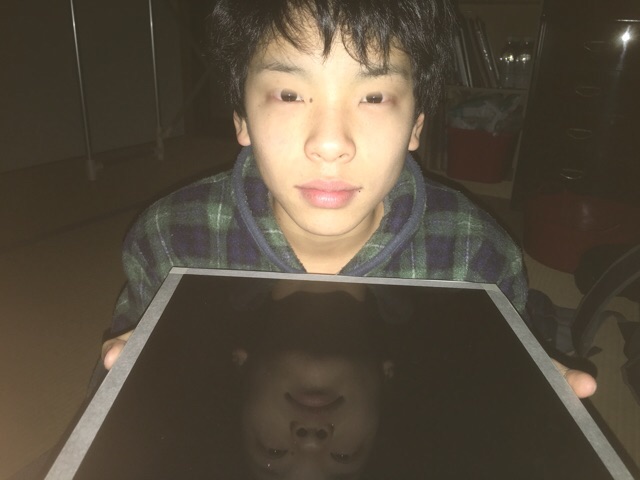 うっすら光っているシートをマイサンが持っています。